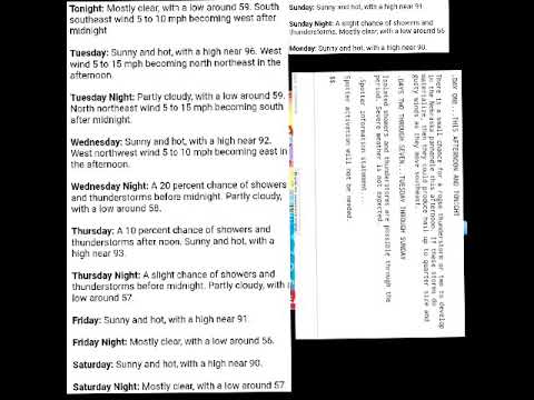 Wednesday: Sunny and hot, with a high near 92. West northwest wind 5 to 10 mph becoming east in the afternoon.