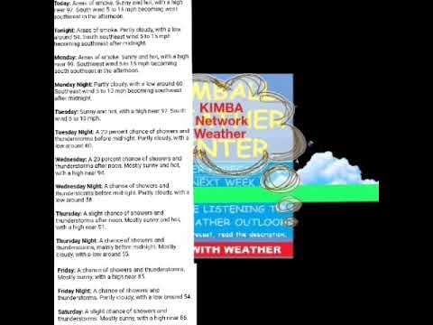 🌈 Weather Forecasts and weather information will be available during the fifth half-hour of every daiperiod right here on KIMBA Network Blogspot (2:00 am to 2:30 am, 6:00 am to 6:30 am, 10:00 am to 10:30 am, 2:00 pm to 2:30 pm, 6:00 pm to 6:30 pm and 10:00 pm to 10:30 pm half-hours). 🌈 🕑 🕕 🕙.
