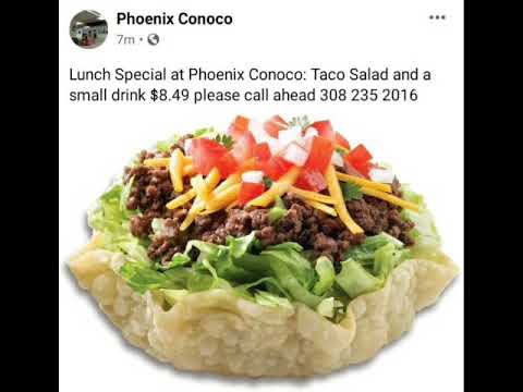 Lunch Special at Phoenix Conoco: Taco Salad and a small drink for $8.49. Please call ahead at (308) 235-2016.