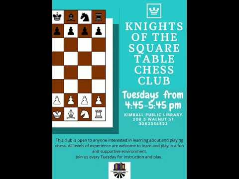 Knights of the Square Table Chess Club Tuesday Evenings from 4:45pm to 5:45pm.