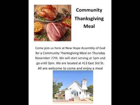 Community Thanksgiving Meal @ New Hope Assembly of God Church coming up on Thanksgiving Day!